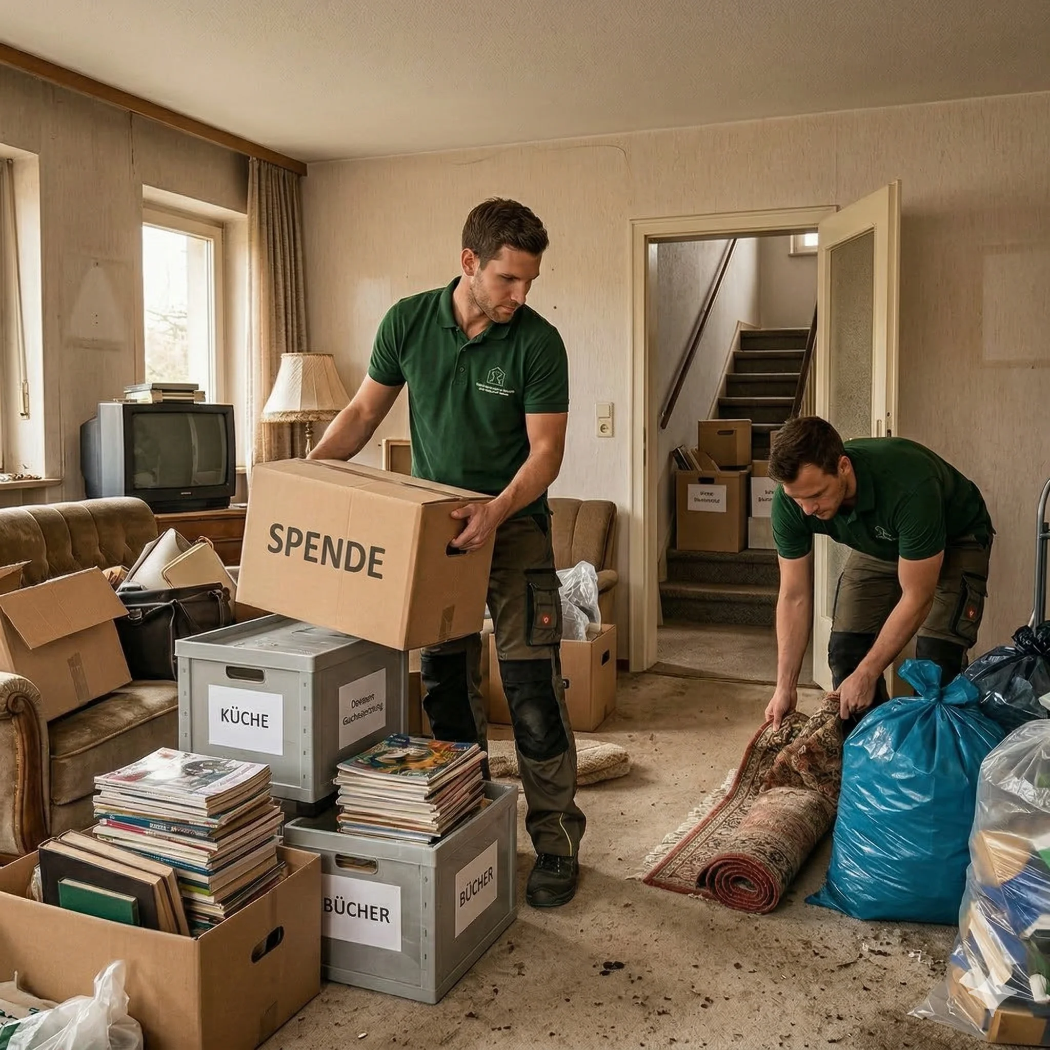 Wir entrümpeln alle Bereiche - vom Keller bis zum Dachboden. Systematisch, Raum für Raum, mit Fokus auf Wertgegenstände und wichtige Dokumente.